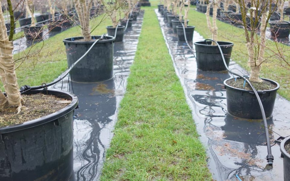 Les solides rouleaux de fond en HDPE se prêtent idéalement au placement des arbres en grands conteneurs sur terrain non bâti. Elles empêchent l?affaissement des conteneurs dans le sol.