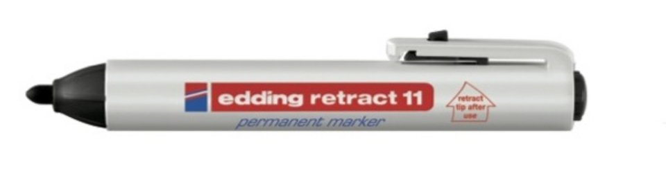 Le marqueur Edding 11 retract a un bouton-poussoir mécanique qui permet de sortir la pointe par simple pression du bouton.