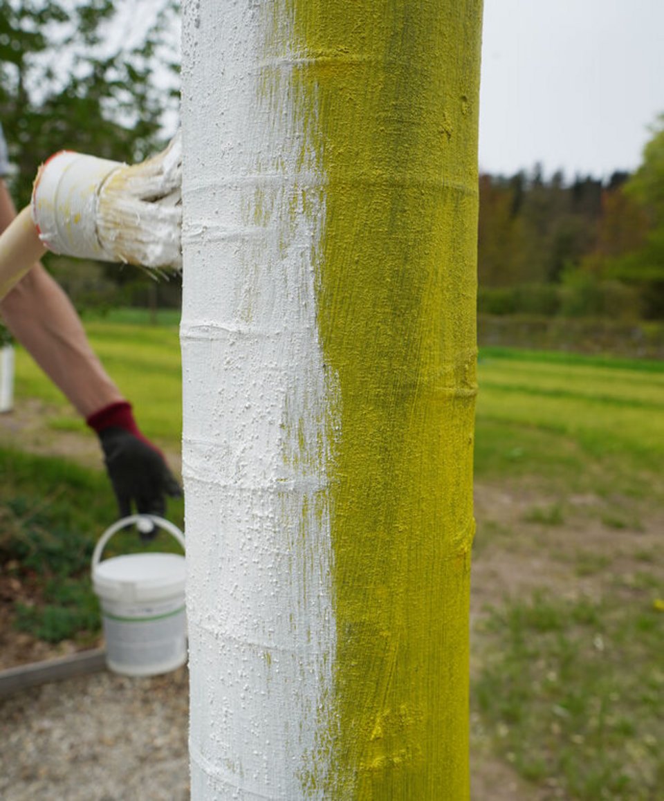 Utilisation: Frotter le tronc avec un voile, appliquer la peinture lorsque la température est sèche, à partir de 10°C. Le tronc doit être sec. En cas d'écorce rugueuse, appliquer une sous-couche ou plus de peinture jusqu'à ce que le tronc soit couvert. (Bien remuer la peinture avant utilisation)