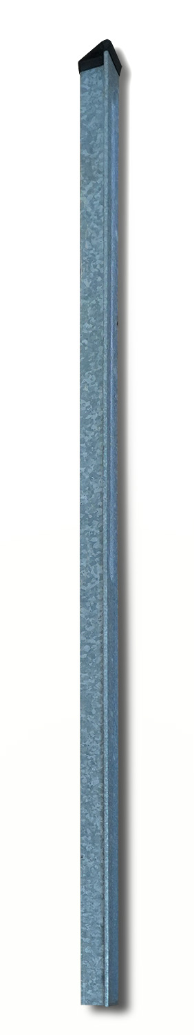 Galvanisé à chaud avec capuchon en PVC à bétonner. Les panneaux de clôture sont fixés aux poteaux à l'aide de languettes brevetées (à emboîter).