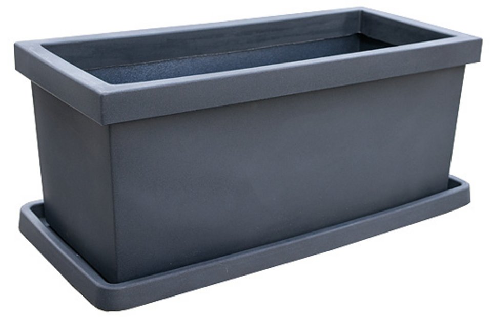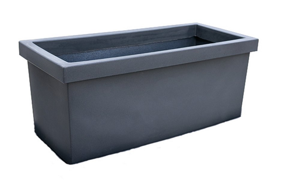 Balconière Liscio de couleur anthracite avec des surfaces en plastique lisses (sans motif décoratif). Ce modèle est légèrement plus haut que le modèle Millerighe avec décorations.