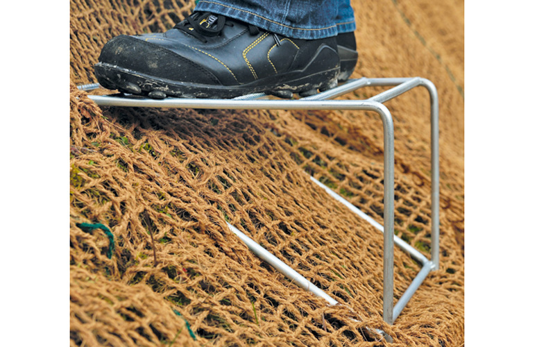 La forme U et l'acier nervuré en biais assure une grande force de maintien et permet la fixation dans les sols lourds. Appropriée pour la fixation des tissus, ...