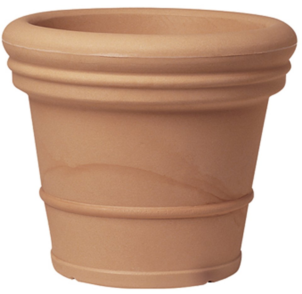 Eleganter und funktionaler Dekorationstopf aus Kunstharz. Leicht, schlag-fest, temperatur- und UV-beständig. Farben: terracotta (t), cenere-aschgrau (c)