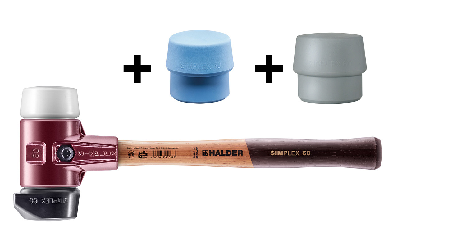 Promo-BOX inklusive zwei Ersatz-Schlagköpfen - aus zweiteiligem Tempergussgehäuse - mit austauschbaren Schlageinsätzen - mit lackiertem Holzstiel Schlagkopf ...
