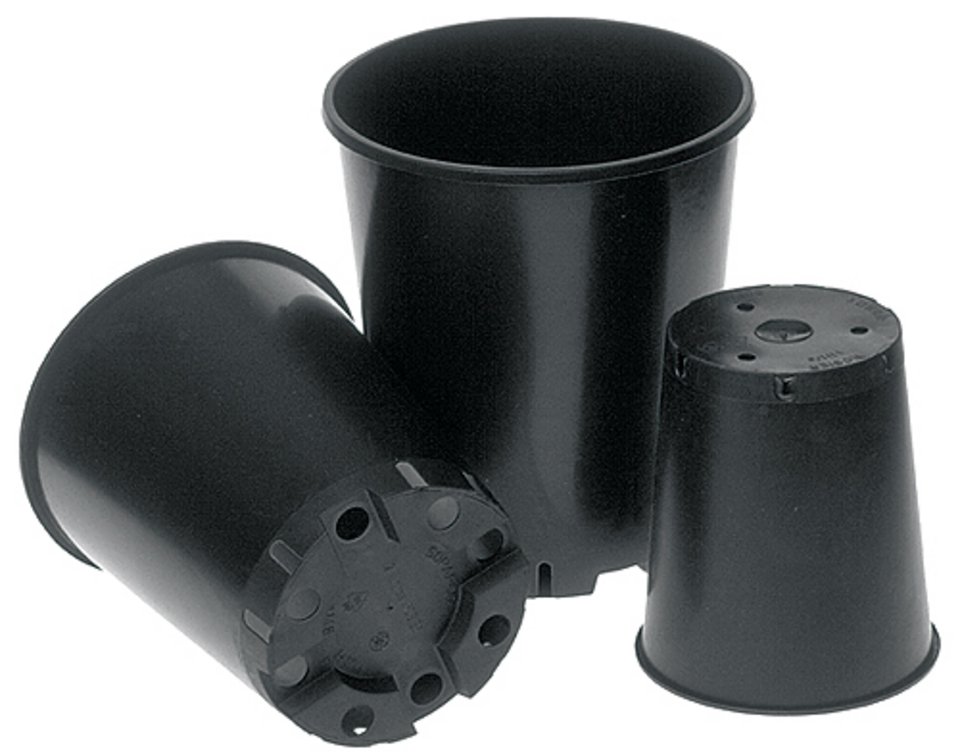 Rosentöpfe aus Weichplastik (schwarz).