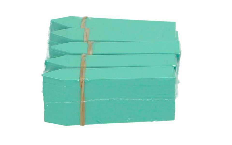 Dank ihrer Spitze lassen sich die Etiketten direkt in die Erde stecken. Die Stecker sind lose in Bunde verpackt.