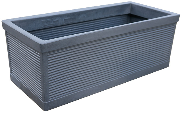 Balkonkasten Millerighe anthrazit aus Kunststoff mit Streifen. Dieses Modell ist leicht niedriger als das Modell Liscio ohne Verzierung. Auch mit einem Unterset ...